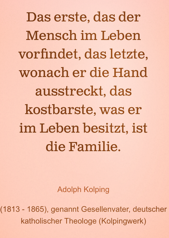 Zitat von Adolph Kolping. 02032016 - Das erste das der Mensch im Leben vorfindet das letzte wonach er die Hand ausstreckt das kostbarste was er im Leben besitzt ist die Familie. - Weisheit von Adolph Kolping - Weisheit von Adolph Kolping.
