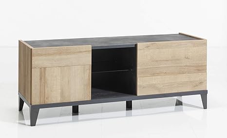 Meubletmoi Tv Mobel 140 Cm Mit Turen Und Nischen Aus Holz Grau Und Beige Moderne Dekoration Kollektion Valentina Amazon De Kuche Haushalt