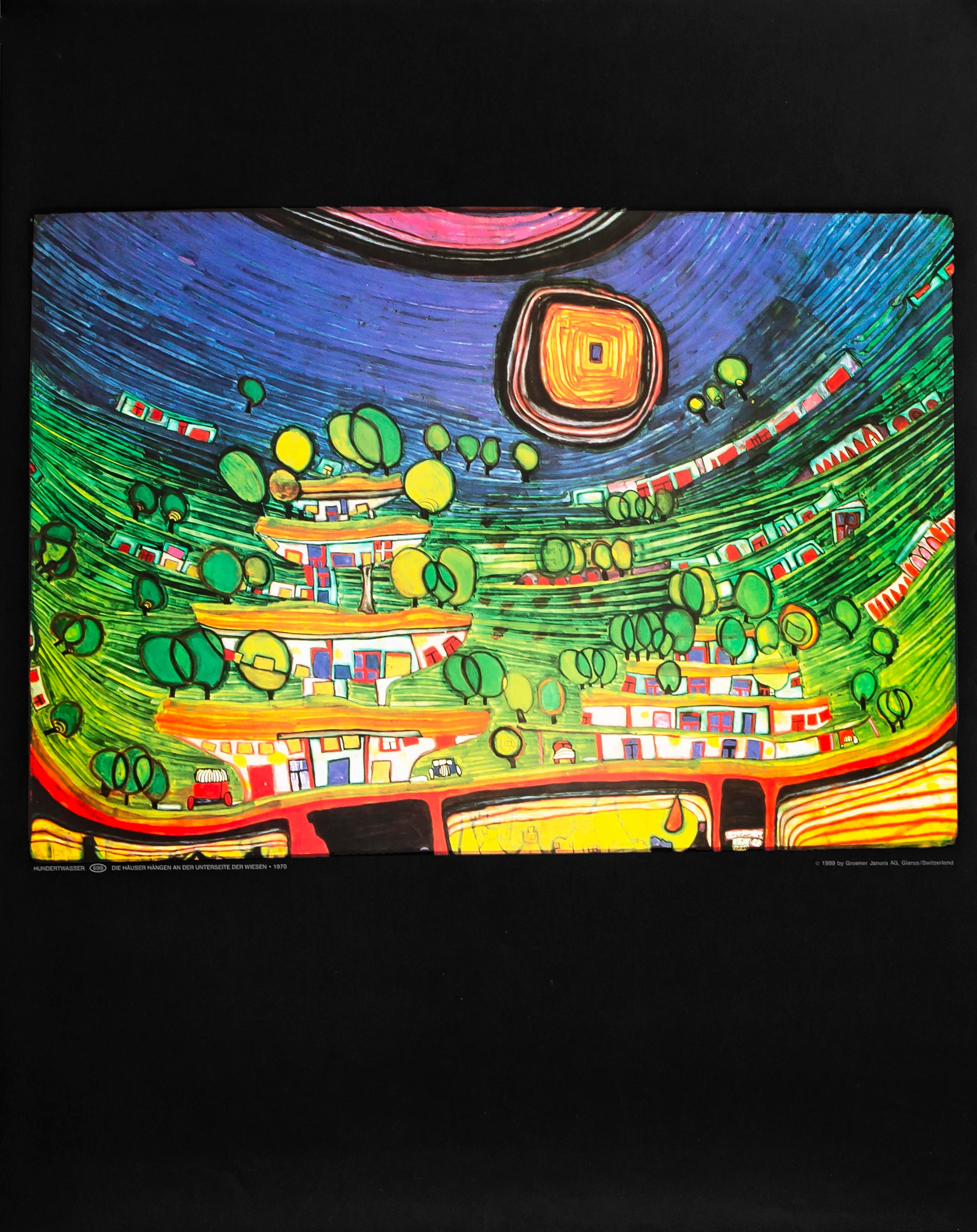 2001 Original Hundertwasser Exhibition Poster Die Hauser Hangen An Der Unterseite Der Wiesen Chairish