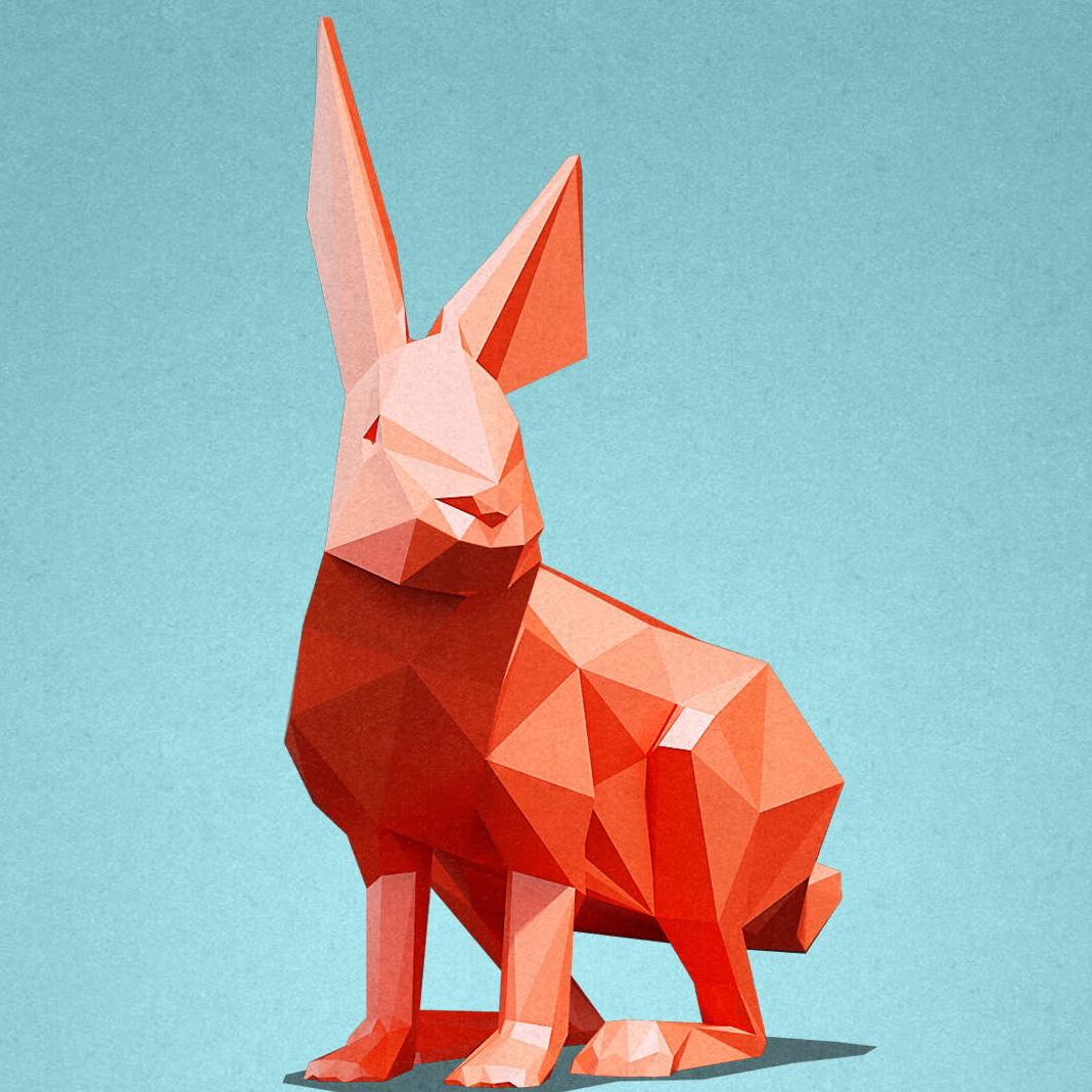 Geometrischer Hase En Affiche Premium Par Eulenschnitt. Besonders zu imponieren weiß dieser Effekt bei der bildlichen Darstellung von Tieren.
