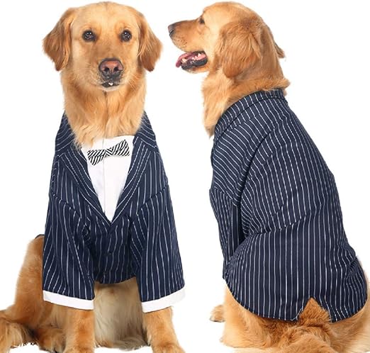 Petvins Formal Anzug Fur Mittelgrosse Und Grosse Hunde Prinz Streifen Smoking Kostum Mit Schleife Haustier Hochzeitshemd Partykleidung Amazon De Haustier