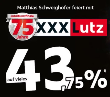 Hierfür fallen im Online-Shop von XXXL Lutz Versandkosten an. 32 Bestellungen in unserem Online-Shop. Die in diesen Kategorien mit Aktion gekennzeichneten Artikel werden während der Jubiläumsaktion um weitere zusätzliche 25 Extrarabatt reduziert.