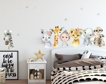 Safari Animal Wall Decal Safari Wall Sticker Giraffe Nursery Decal African Animal Decal Safari Animal Watercolor Safari Nursery Wall Decal Animal Wall Art Nursery Safari Nursery Walls Animal Wall Decals