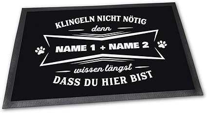 Amazon De Pfotenschild Fussmatte Mit Spruch Klingeln Nicht Notig Mit Zwei Wunschnamen 60 X 40