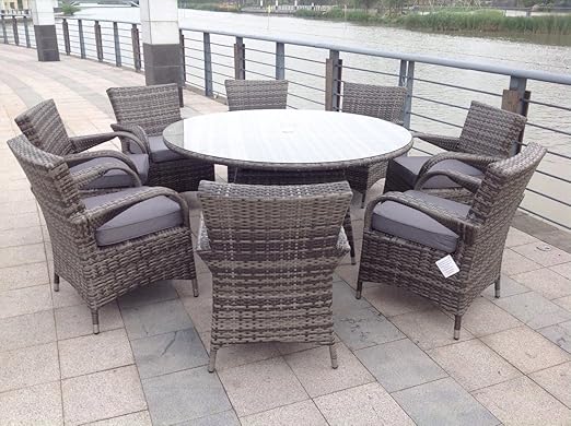 Amazon De Rattan Aluminium Outdoor Garten Wintergarten Mobel 8 Sitz Runde Esstisch Set In Grau