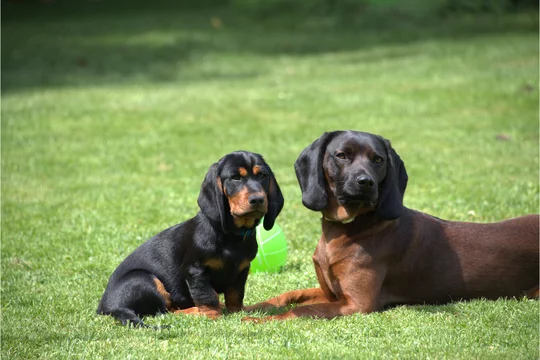 Jagdhunde Im Gras Bgs Und Dachsbracke Stock Photo Adobe Stock